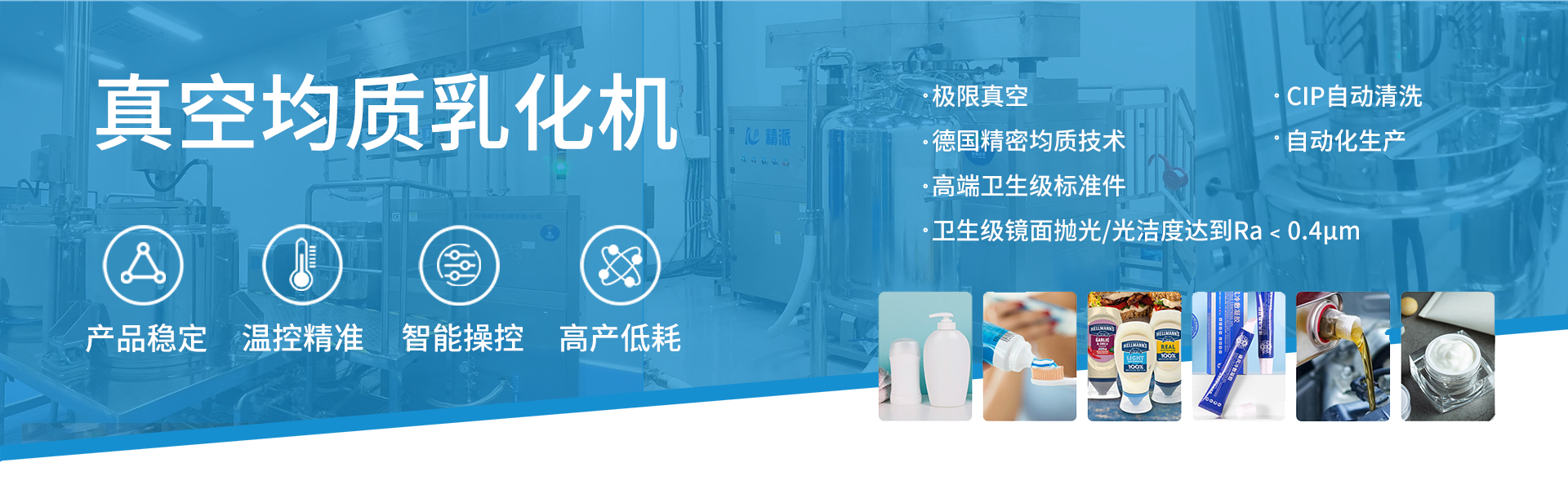 無錫精派機械成立于2009年,是一家高科技乳化 灌裝包裝生產線解決方案集成供應商,致力于用 戶合規化、高效化、智能化產業升級。應用行業 包括制藥醫療、寵物醫療、日化護理和醫院等。 應用產品涵蓋水劑、膏劑、凝膠、液體制劑、粉 劑、注射劑等非無菌和無菌產品。